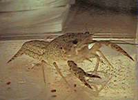 下は同じくペットの「くろちゃん」。もう10回以上も脱皮をしているアメリカサリガニ。4月に生まれてすぐ、我が家のペットになった。